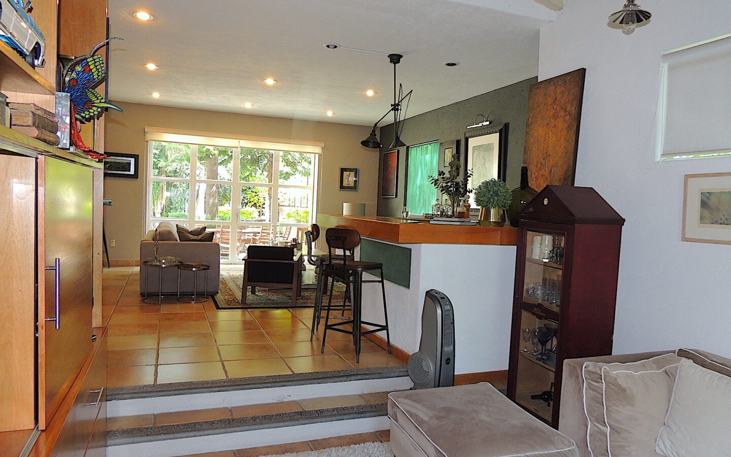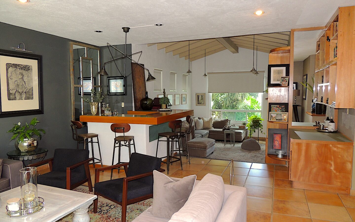 Fabulosa residencia estilo contemporáneo con excelentes acabados, amplios espacios en todas sus zonas, enmarcados por áreas verdes y árboles maduros. Incluye, también, un taller independiente de la casa, en la entrada, ideal para práctica de yoga, ballet, gimnasio, etc. Entrando, encontramos un recibidor de doble altura con muro llorón, sala comedor y un bar, además de una agradable sala de tv. Cocina integral con generosa mesa de trabajo, barra desayunadora, alacena y cuarto de servicio.