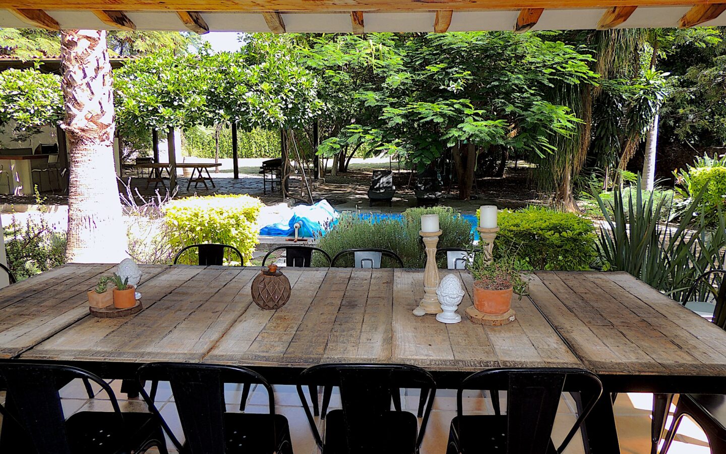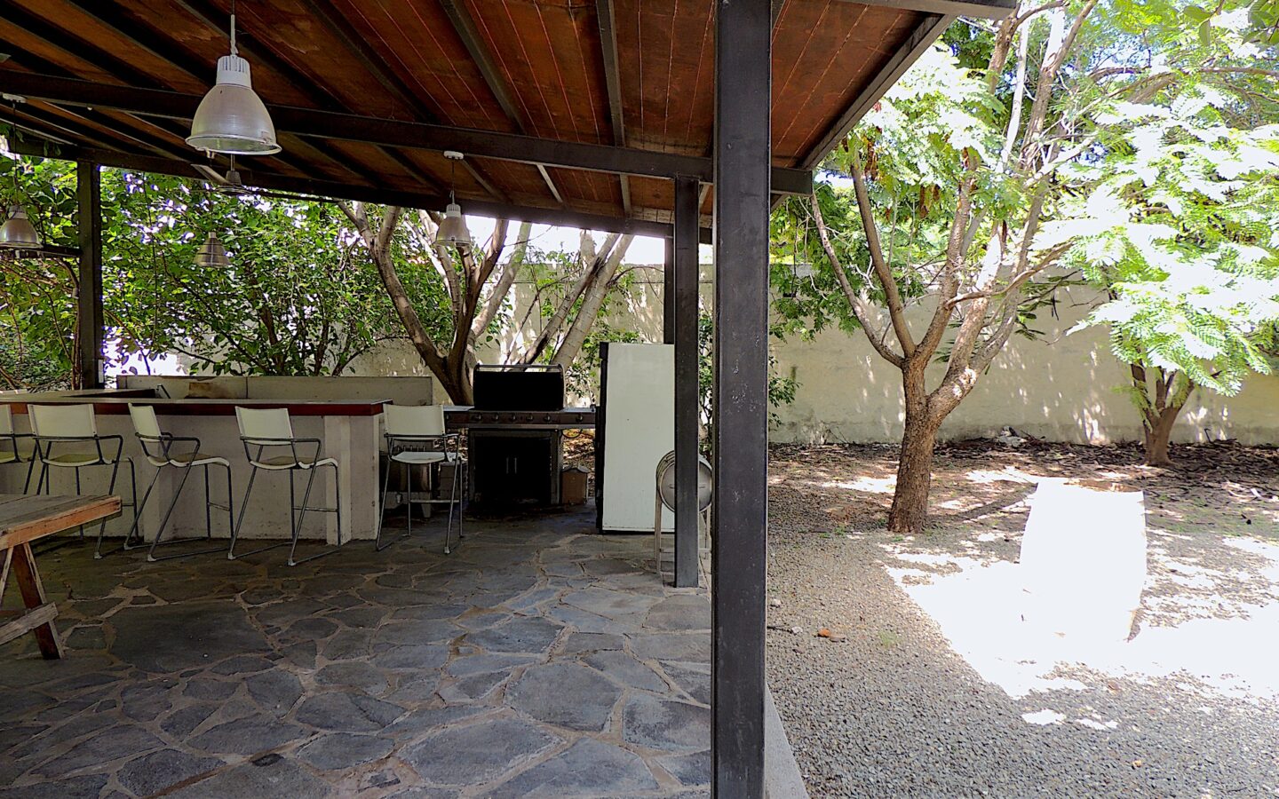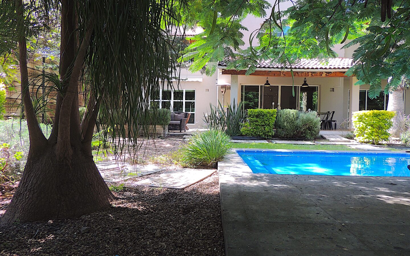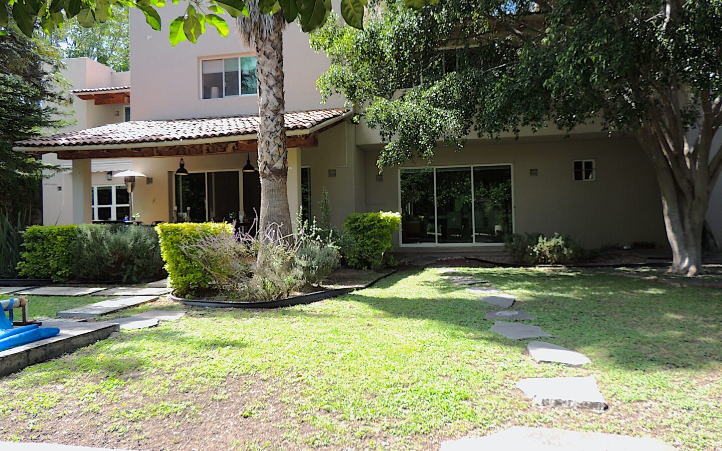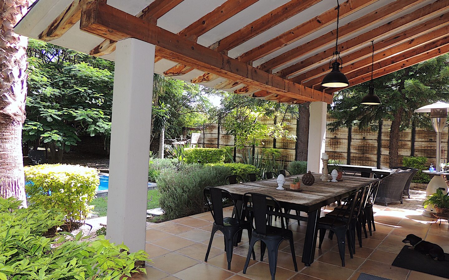 En el área de jardín, cuenta con alberca, dos terrazas, una pequeña y la otra acondicionada con asador y todo lo necesario para disfrutar con amigos y familiares de eventos sociales. Dos medios baños para dar servicio a esta zona.