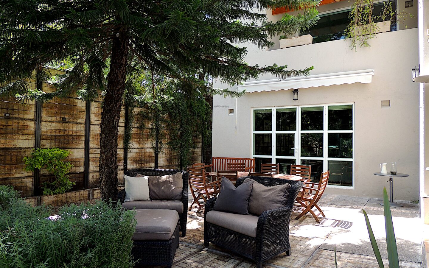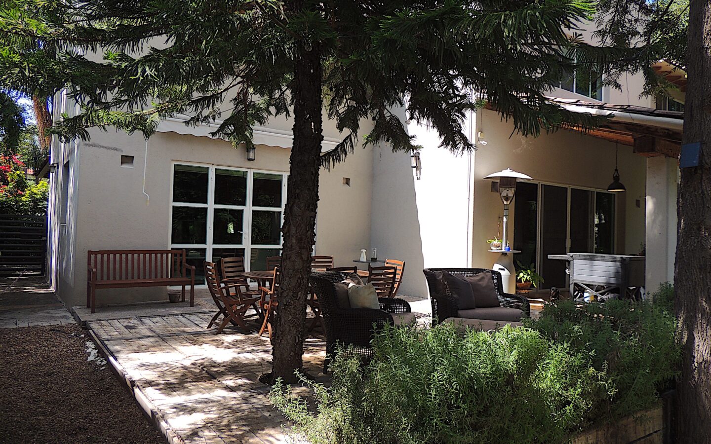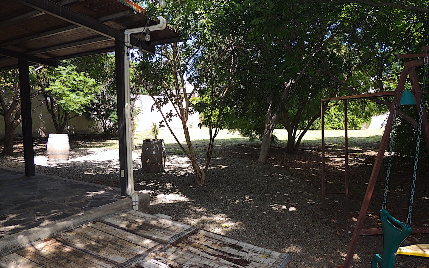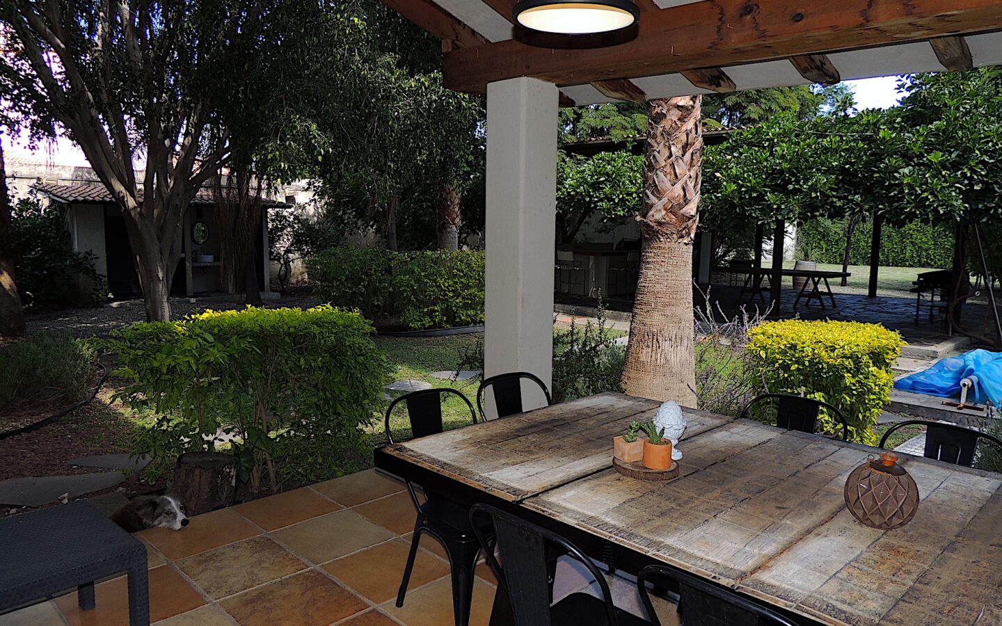 En el área de jardín, cuenta con alberca, dos terrazas, una pequeña y la otra acondicionada con asador y todo lo necesario para disfrutar con amigos y familiares de eventos sociales. Dos medios baños para dar servicio a esta zona.