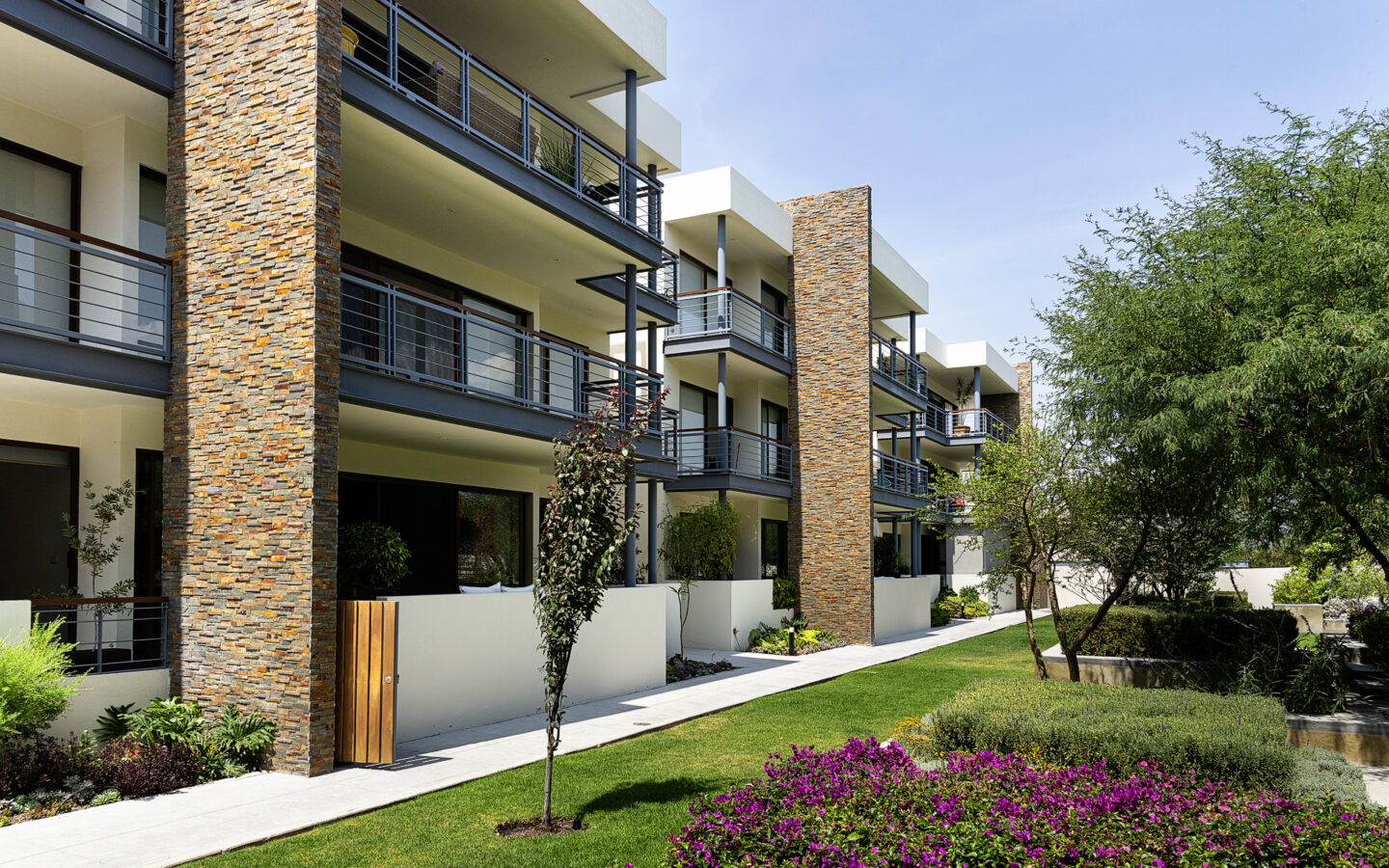 Vive en un ambiente rodeado de naturaleza en un exclusivo desarrollo de 3 niveles y tan solo 21 departamentos en Joy Juriquilla. Moderno y muy iluminado, en planta baja, auto sustentable ya que tiene sistema de calentamiento solar y páneles solares. Cuenta con 2 accesos, uno desde el estacionamiento y el otro desde el jardín común muy arbolado. Amplia terraza a todo lo largo del departamento y con vista desde recámaras y estancia a un hermoso jardín. Recibidor con closet de visitas, amplia estancia con cocina integral abierta con barra y lavavajillas, área de lavado, baño completo y otro de visitas. Dos recámaras con vestidor con persianas blackout, la principal con baño y dos ovalines, además de closet de blancos. Bodega, dos lugares de estacionamiento techados con acceso junto al elevador. Amenidades: alberca, salón social con TV y baño, jardines, huerto orgánico, playground y estacionamiento para visitas. “Los precios están sujetos a cambios sin previo aviso y no incluye muebles. Imágenes ilustrativas”.