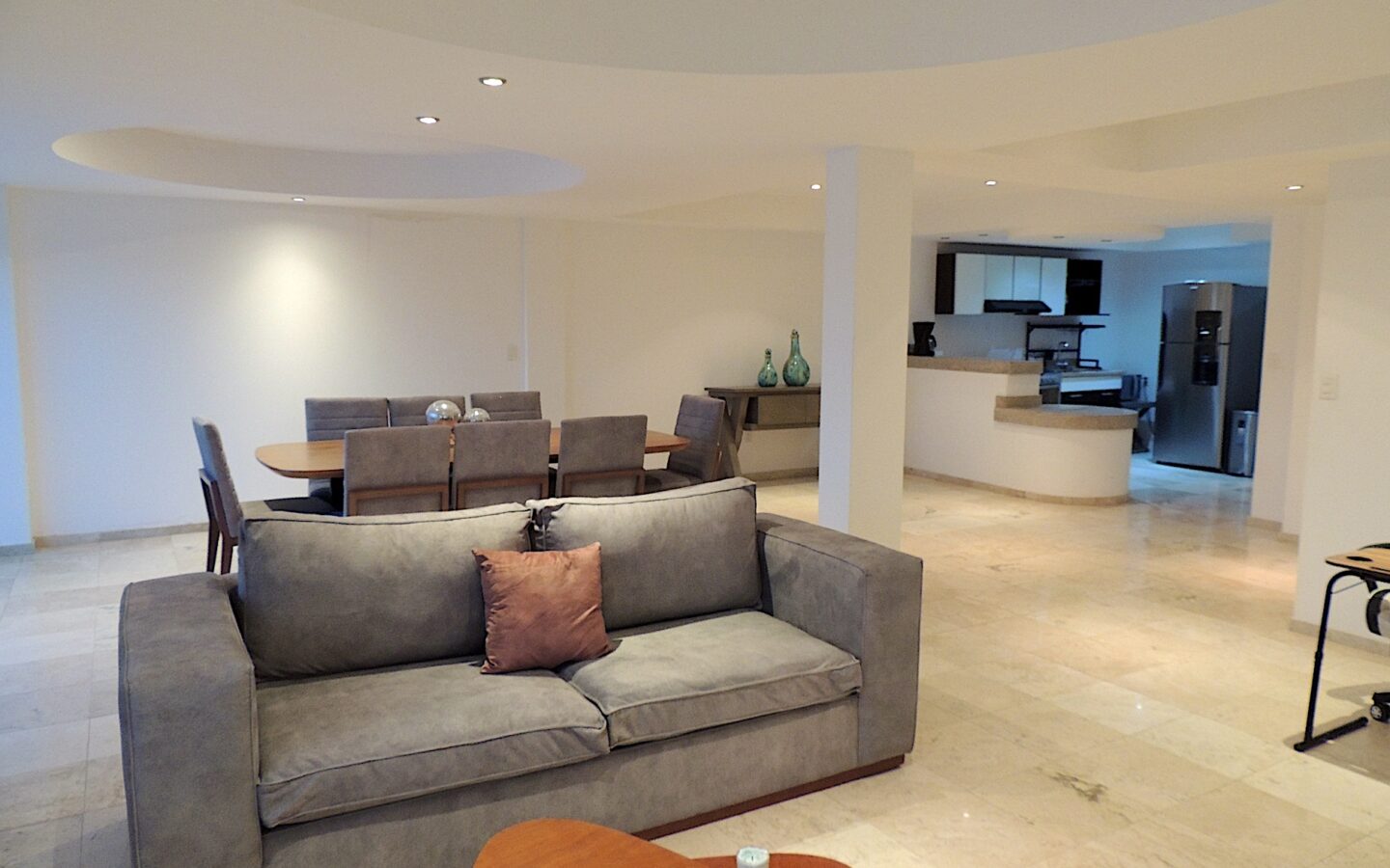 En el 9o nivel, se encuentra este inmueble de 332 m2 con una generosa estancia, cocina abierta, medio baño de visitas y una terraza; adicionalmente, en este mismo piso hay una recámara secundaria, con closet y baño completo.