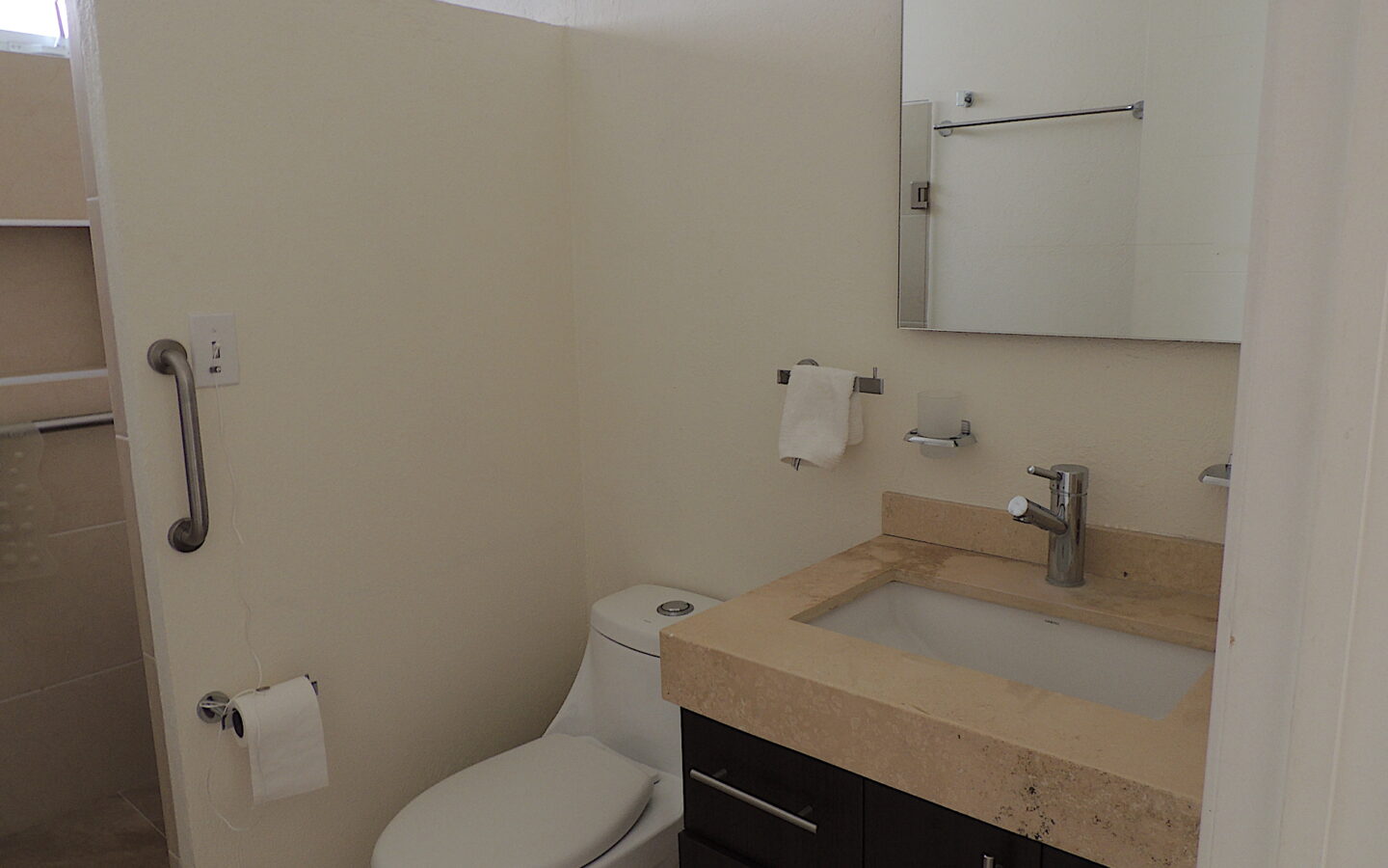 Dos recámaras con vigas de madera en sus techos, cada una con su baño adaptado para este perfil descrito y con botón de emergencia por si requieren de ayuda en caso de accidente.